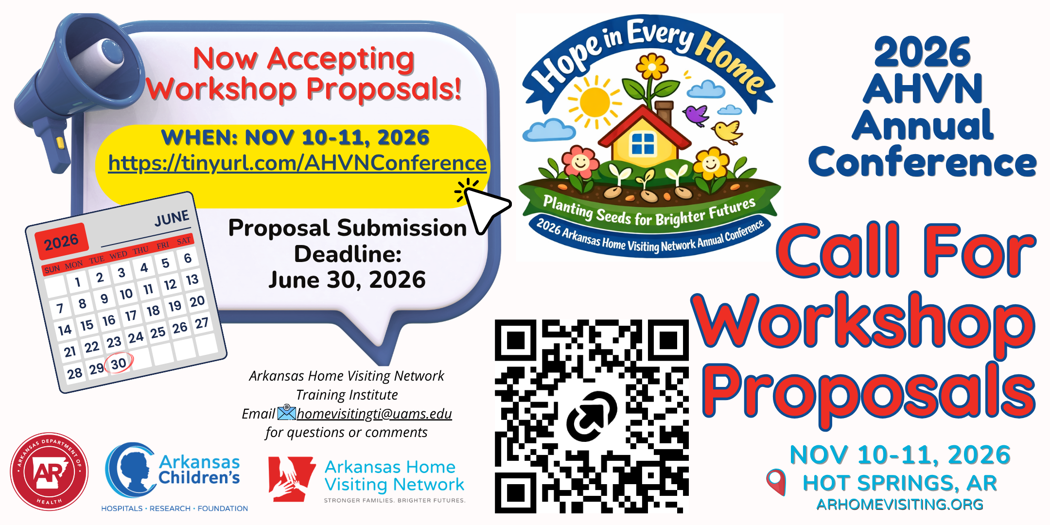 The Annual Arkansas Home Visiting Network Conference provides training opportunities for those working in home visiting programs throughout the state of Arkansas. Participating home visiting programs include, but are not to be limited to Arkansas Early Head Start Home Visiting, Following Baby Back Home (FBBH), Healthy Families America (HFA), Home Instruction for Parents of Preschool Youngsters (HIPPY), Nurse-Family Partnership (NFP), Parents as Teachers (PAT), and SafeCare Arkansas. These programs promote high quality and evidenced-based home visiting services to Arkansas’ families during pregnancy and until children enter kindergarten. They strive to build stronger families and brighter futures for the children of Arkansas by improving school readiness, increasing positive health outcomes and decreasing child maltreatment.