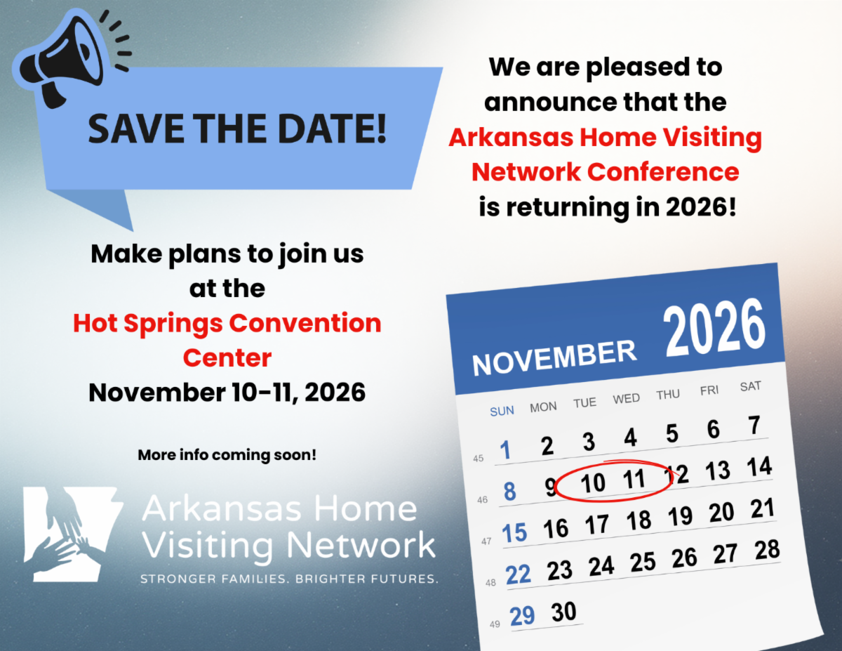 The Annual Arkansas Home Visiting Network Conference provides training opportunities for those working in home visiting programs throughout the state of Arkansas. Participating home visiting programs include, but are not to be limited to, Following Baby Back Home (FBBH), Healthy Families America (HFA), Home Instruction for Parents of Preschool Youngsters (HIPPY), Nurse-Family Partnership (NFP), Parents as Teachers (PAT), Early Head Start Home Visiting, Family Connects Union County, and SafeCare Arkansas. These programs promote high quality and evidenced-based home visiting services to Arkansas’ families during pregnancy and until children enter kindergarten. They strive to build stronger families and brighter futures for the children of Arkansas by improving school readiness, increasing positive health outcomes and decreasing child maltreatment.